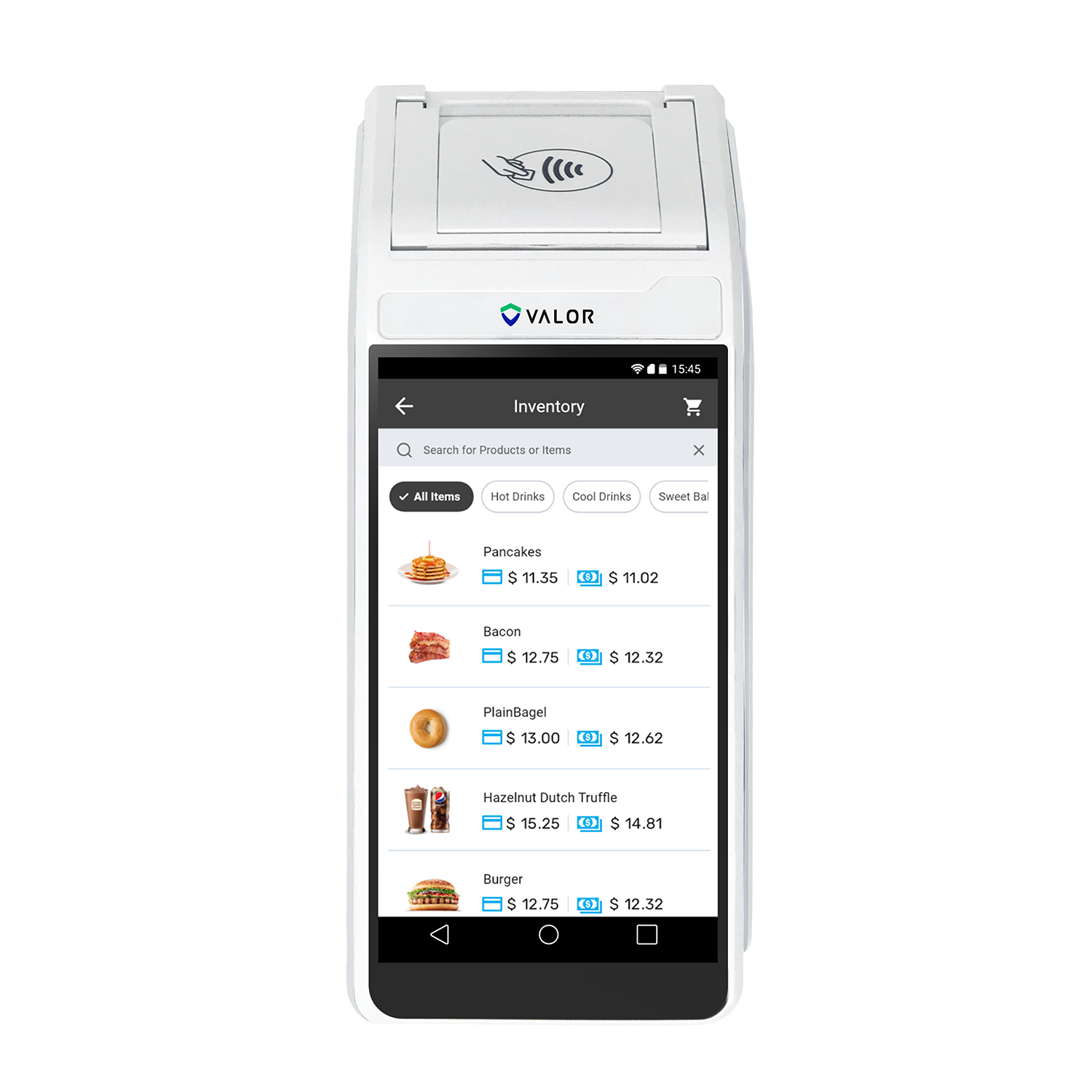 Valor PayTech’s VL500 features a stunning HD 5.5” touch color screen and built-in 2 Megapixel camera with LED flash light technology, combining all the features of an Android tablet with a powerful POS payment terminal all in a sleek and compact design. The VL500 offers the best viewing and user experience in all environments and a thermal printer with a high capacity battery for continuous operations throughout the day. The VL500 optimizes the checkout process for your business and comes with several features including 4G LTE / 3G, Wi-Fi,Bluetooth, microphone, front / rear camera, bar code reader, fingerprint reader, base, and stylus. In addition to being the industry’s top wireless terminal, the VL500’s processing power allows Valor to build customized apps to increase the efficiency and success of your business